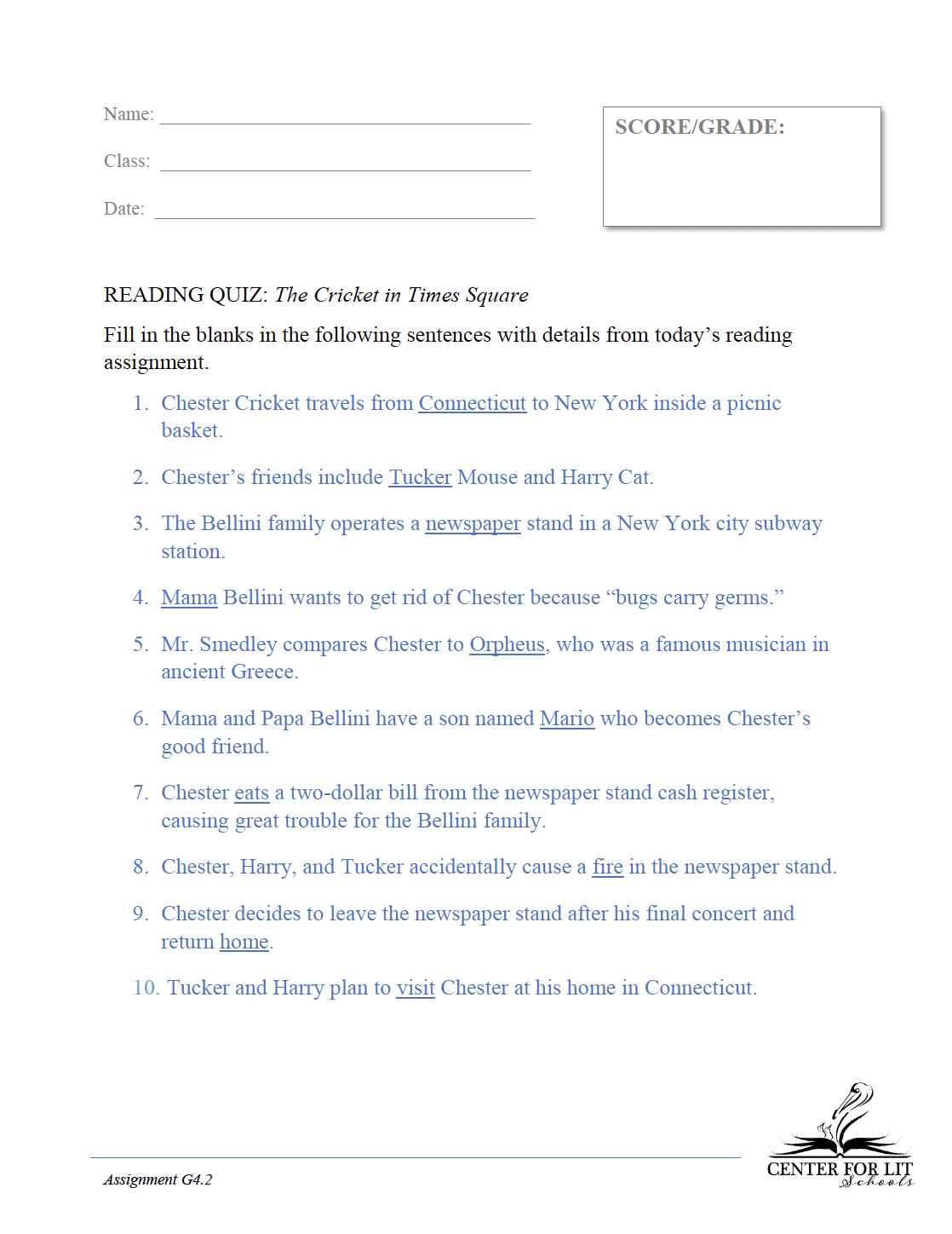 G4.2: The Cricket in Times Square Reading Quiz: Fill in the Blanks Download CenterForLitAugust 26, 2019Grammar, G4, G4.2, The Cricket in Times Square 0 Likes