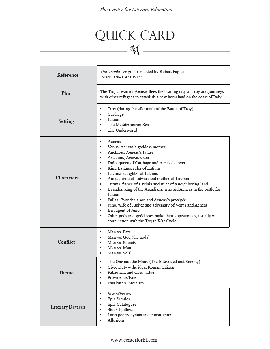 Quick Card: The Aeneid by Virgil Download RETURN TO QUICK CARD LIBRARY CenterForLitAugust 1, 2019The Aeneid, Virgil, A 0 Likes