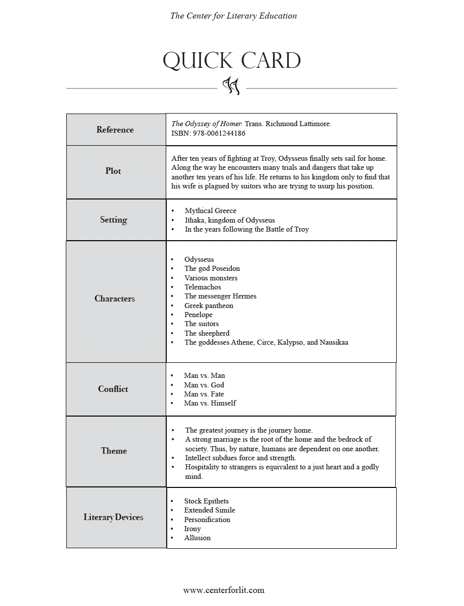 Quick Card: The Odyssey by Homer Download RETURN TO QUICK CARD LIBRARY CenterForLitJuly 31, 2019The Odyssey, Homer, O 0 Likes